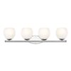 Swirled glass, in a feathered opaque white, creates rich, refined style for a transitional 4-light vanity bath fixture. Perfect over your sink, it casts soft, flattering illumination that's just right for daily grooming and beauty rituals. The clean lines of its frame are emphasized with a classic chrome finish that gleams with timeless style.