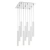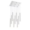Elevate a living room with the sleek charm of elongated shapes from this nine-light pendant fixture. Complete with a radiant metallic finish and clean lines, this stunning fixture features a bright chrome finish.