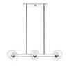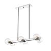 Light up a kitchen island or bar space with this contemporary pendant light by Z-Lite®. This light features a chrome finish and a horizontal mounting structure that displays two rows of four delicate clear glass orb shades.
