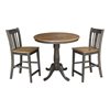 International Concepts 36-in Round Extension Dining Table w/ 2 San Remo Counter Height Stools - Hickory/Washed Coal