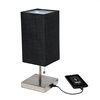 - Brushed nickel base with USB charging port