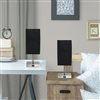 These mini lamps feature a USB port on their base for charging your phone or other devices. They have a fabric shade and they come in a set of 2.