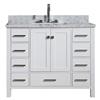Ariel Cambridge White 43-in Single Sink Bathroom Vanity with Carrera White Natural Marble Top