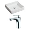 It features a square shape. This vessel set is designed to be installed as an above-counter vessel set. It is constructed with ceramic and it comes with an enamel glaze finish in white colour. It is designed for a 1 hole faucet.