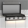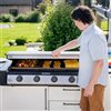 A powerhouse for your personalized outdoor kitchen, the Blackstone 4 Burner Drop-In Griddle with Hood and Propane Ready Configuration lets you cook breakfast, lunch, and dinner while enjoying the fresh air. This top-tier griddle boasts a range of features with flashing LED lights on the knob to indicate ignition and flame status, puddle lighting, a flame failure device, and four independently controlled U-shaped burners. The innovative Front Access Rear Grease Management System provides convenient access to the rear grease cup from the front of the griddle. Ideal for creating your own customized outdoor kitchen or BBQ Island. Whether you're crafting your dream outdoor kitchen or BBQ island, this griddle is your go-to choice.