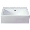 This modern vessel belongs to the exquisite Xena Farmhouse design series. It features a rectangle shape. This vessel is designed to be installed as a semi-recessed vessel. It is constructed with ceramic. This vessel comes with an enamel glaze finish in white colour. It is designed for a 3h8-in. faucet.