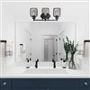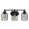 Carefully constructed with both tradition and on trend designs in mind, this all black caged style three light vanity is just what you need in your home and/or office. Equipped to easily mount onto the wall of your choice, this piece will enhance your décor all while lighting up the room adequately with the open cage design of the fixture. Check out all of the Ironhouse collection fixtures to combine vanity, wall sconce and pendant lighting to match into your space.