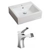 It features a rectangle shape. This vessel set is designed to be installed as a wall mount vessel set. It is constructed with ceramic and it comes with an enamel glaze finish in white colour. It is designed for a 1 hole faucet.
