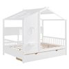 This full size house bed combines durable construction with functional storage to support everyday comfort and organization. Built from quality wood materials, it features a house inspired silhouette that adds structure while maintaining practicality. Integrated drawers and a rear storage shelf help manage daily items efficiently while preserving floor space. A solid slat foundation supports a full mattress without the need for a box spring making this bed suitable for long term use as children grow.