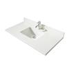 - Maintenance-free Quartz countertop with rectangular porcelain undermount sink.