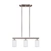 The Oslo three light linear chandelier in brushed nickel provides abundant light to your home, while adding style and interest. The Oslo lighting collection by is a sleek design, with smooth and clean lines. The Opal Etched glass adds to this collection's contemporary and minimalist character. The collection includes nine-, five-, and three-light chandeliers, pendants in four sizes, both flush and semi-flush ceiling fixtures, as well as one-, two-, three- and four-light wall/bath fixtures. Both incandescent bulb and ENERGY STAR® qualified DEL bulbs are usable.