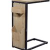 - C-shaped table features light brown top and side panels with a matte black frame