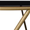 Bring subtle, yet stunning elegance into any home with this side table from HOMCOM. Using a metal frame for stability, it is crafted in a crossover reverted triangle shaped design for an eye-catching look. Contrasting with the muted gold tone of the frame, the black MDF tabletop provides a reliable place to keep drinks, magazines, and plates close.