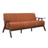 The retro-inspired style of the Damala collection will perfectly accent your modern home decor. Subtle contouring to the sofa’s wood frame is finished in walnut, presenting as a classic complement to the orange fabric that covers the padded sofa’s seat and back.