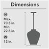 - With the minimum required downrod, the hanging length is 22.5-in; when using all of the included downrod, the maximum hanging length is 70.5-in