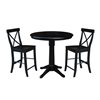 International Concepts 36-in Round Extension Dining Table w/ 2 X-Back Counter Height Stools - Black