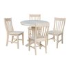 International Concepts 5-Pc 36-in Unfinished Wood Round Extension Dining Table Set w/ 12-in Leaf and 4 Dining Chairs