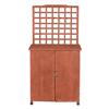 Multifunctional potting table makes gardening easier by creating an organized workstation, extra interior storage and stylish designer look for outdoor use. This potting table brings out your gardening genius. Roomy counter provides work space. Ample cabinet storage with shelf lets you organize garden supplies so they’re within quick, easy reach. Sturdy lattice supports multiple hanging plants and work items. Doubles as a buffet table, hobby station or fashionable home accent. Creates a charming focal point indoors or out. Crafted of solid wood harvested from the Cypress tree family with decay resistance similar to Western Red Cedar. Easy-to-follow assembly instructions. Ships anywhere in North America.