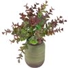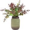 Our Real Touch™️ Eucalyptus plant which boasts exceptional realism stands as the epitome of excellence in the realm of artificial botanicals. Whether you're looking to enhance your home décor or bring a touch of tranquility to your workspace our mini Eucalyptus spring plant is the perfect choice. Features: Real Touch™️ artificial Eucalyptus foliage plant. Nestled inside a ceramic pot with a two-toned brush rustic finish. Green and brown foliage are attached to a foam base inside the pot. For in Door use only. Dimensions: 10-in H x 10-in W x 10-in D (approximately). Pot dimension: 4.75-in high x 3.25-in diameter. Material(s): plastic/foam/ceramic
