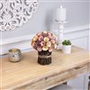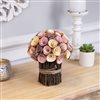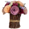 This wooden flowers bouquet offers a handcrafted aesthetic with a blend of rustic charm and delicate colour. Featuring pastel pink-purple and yellow wooden flowers, the artificial floral arrangement brings a natural yet artistic feel to any setting. Each flower is carefully shaped to mimic real blooms while providing lasting durability. Product Features: Artificial floral spring bouquet. Designed with flowers made from wood shavings in pastel pink plum purple and butter yellow. Accented with preserved Limonium branches. The vase is crafted of real twigs wrapped in jute twine. For in Door use only. Dimensions: 8.25-in high x 7-in diameter. Material(s): wood/jute/foam