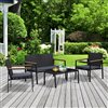 Boring patio? Brighten your backyard with a stylish rattan wicker furniture set from Outsunny and make the outside of your home just as inviting as the inside. Our 4-piece set includes 2 single chairs, 1 loveseat and 1 matching table. It is perfect for relaxing on a warm summer afternoon or have fun get-togethers in the cool evenings.