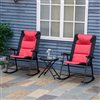 Outsunny Black Metal Rocking Chair with Red Cushion - 3-Piece