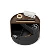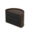 Moona features round, circular shapes for a one-of-a-kind jewelry organizer. Both decorative and functional, Moona has a large display top that doubles as a tray for smaller accessories, perfume, small plants or other items. Its three rotating drawers can provide hidden storage or be pushed out for easy access. With its unique semi-circle shape and beautiful wood accents, Moona can be displayed on your vanity, counter, dresser, desk and more.