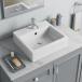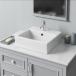 This rectangular basin-style sink features a modern look with minimalist, elegant lines to enhance any bathroom decor. Its vitrified porcelain design makes it a durable product that resists chipping, scratching and tarnishing.
