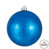 Vickerman 3" Blue Shiny Ball Ornament. This ornament features a shiny finish that will add gloss to any holiday decorating project. This item is made from shatterproof and UV resistant plastic for extended protection from fading and breaking. The cap is drilled and looped with floral wire to ensure it is reliable and ready to hang. This unique ornament is an exceptional addition to any collection as it matches well with a variety of décor and goes perfectly on a holiday tree. Includes 12 ornaments per pack.