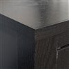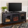 Create a warm, entertaining space in any room of your home with this black media stand with electric fireplace. Crafted from high-grade MDF with a durable laminate finish to accommodate most flat-panel TVs up to 60-in. Features adjustable shelves behind two side cabinets to fit your components and a cable management system. Installation requires no technician, simply plug into a standard household outlet and no venting required.