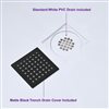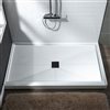 - Removable matte black drain cover included, giving the shower base a modern look