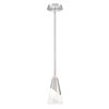 The cool curve of a metal shroud adds dynamic flair to this modern pendant light. Fashioned with a swirling art glass shade, it delivers true, bright illumination that lends impeccable ambiance to kitchens, baths and living areas. A brushed nickel finish gleams in the light, complementing the canopy, downrod, and shroud to perfection.