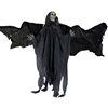 If you are hunting for scary Halloween decorations then this is the perfect figure to put a little spine-tingling fun into your Halloween display. The animated design makes it perfect for your party this year. The reaper will come to life and haunt anyone who sees it. He is both touch and sound activated. Do you dare to touch his face or make a sound when near him?. Product features: Animated winged reaper Halloween decoration. Skeletal face and hands. Eyes are illuminated with red LEDs that flash on and off. Black wings and arms move while he laughs maniacally. Touch and sound activated when turned on. Wing and arms are bendable for easy shaping. Requires (3) 'AA' size batteries - included. Convenient on/off switch. Comes ready-to-hang on a clear cord. For indoor or covered outdoor use. Care instructions: spot clean only. Dimensions: 42"H x 50"W x 7"D (with wings fully extended). Material(s): polyester/cotton/plastic/foam/wire