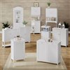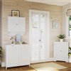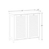 Display your favorite home decor items on a spacious top shelf while hiding dirty laundry and towels with this double-door hamper cabinet by RiverRidge Home(R). Features a traditional shutter door design, polished silver knobs, white painted finish, inset side panels, and a removable, interior cloth hamper bag, making it easy to transfer laundry to the washer. Tilt-out cabinet door allows you to easily open and toss clothes, towels and more into the inner bags. Anchors to the wall for added stability. Pair with additional Ellsworth Collection items for more storage and a fresh new look. Additional dimensions: Overall Cabinet Interior (each): 14.5-in. W x 11-in. D x 25-in. H; Hamper Basket Interior (each): 12.94-in. W x 11.44-in. D x 17.75-in. H; Height from Floor to Bottom of Cabinet: 2.75-in. H.