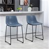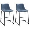 HOMCOM Set of 2 Dark Blue Counter Height Bar Stools with Back