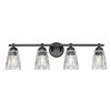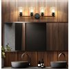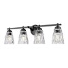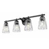 Expansive vanity spaces receive full attention in lighting with a classic design as this 4-light vanity fixture exudes a hint of glam. Framed in bold matte black metal, its four clear glass shades bring a textural quality with overlapping diamond patterning that adds to aesthetics and lighting impacts. This dimmable fixture is perfect for meeting light level needs throughout the day and night.