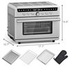 Update your outdated oven and enjoy a healthier life! This digital air fryer oven can cook delicious food with 85% less oil or fat to help you keep a balance diet. With 10-in-1 presets, you can always find the best way to cook meat, pizza, vegetables, chips, French fries, fish, cookies, cakes and fruits. Made of food grade stainless steel and galvanized sheet, the oven can be cleaned easily with a damp sponge. The adjustable temperature from 100°F to 450°F drives out the extra fat in the food while maintaining the crispiness. This air fryer oven has capacity is large enough to serve 4 to 6 people.