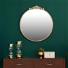 This luxurious 30-in mirror brings the opulence of baroque design into the modern home. Its expertly detailed circular frame, finished in a rich gold, serves as an eye-catching work of art that instantly elevates the style of your living room, bedroom, or entryway. Built with premium HD glass, it ensures a distortion-free reflection while maximizing natural light to make any space feel more open and inviting. Durable and easy to mount, this ornate wall mirror is a perfect blend of historic grandeur and contemporary quality.