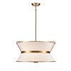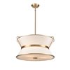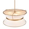 The Layla collection, designed by Kevin Kraemer, features a rich plated brushed brass finished frame, which holds the double linen shades in a unique fashion. A stunning fixture for any kitchen or dining room.
