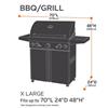 Ravenna Grill Cover The Ravenna grill cover from Classic Accessories combines a striking style with durability, fade-resistance and convenient features. With its adjustable hem cords and linked buckles, the Ravenna grill cover will fit snugly on a wide variety of sizes and will protect your grill for years. Reinforced padded handles make removal easy Double-stitched seams add strength and a stylish accent Structured vents: Stay open to prevent wind lofting and mildew Lined with mesh barriers Waterproof backing keeps your grill dry Elastic hem cords move easily through a special channel for a snug fit Adjustable webbing belts slide easily for a tailored look (4) Custom-colored buckles will keep your cover secure in any weather Striped webbing adds an attractive accent