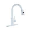 Clihome Matte White 3-Function Single-Handle Pull-Down Spout Kitchen Faucet With Base Plate