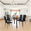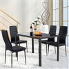 This is our modern and beautiful dining table which combines quality and style into one and serves the idea of simplicity and contemporary living. It includes one tempered glass top table and 4 PVC leather chairs that makes it looks fantastic in any dining room. There is no doubt to say that such an elegant addition and suit any decor style dining room with the black colors. The soft cushions and backrests make for an enjoyable seat. These stylish dining chairs fit anywhere, leaving you a comfort sitting and you will make full use of them.Donot miss it out if u are looking at it!