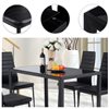 - Featuring a smooth glass tabletop and PVC‑leather chairs in a beautifully finished black color, this set suits a variety of rooms and is easy to assemble