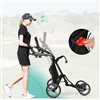 This golf cart is made of high quality aluminum alloy that is corrosion and rust resistant for enhanced stability and load-bearing capacity. It has four high-density and resistant EVA foam covered wheels with ball bearings that provide a smooth ride and perfect traction on all kinds of terrain.