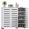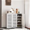 HOMCOM 20-Pair White 10-Tier Narrow Shoe Cabinet w/ 3 Slatted Doors