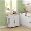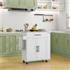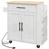 HOMCOM White Composite Base with Wood Top Rolling Kitchen Island Cart w/ Storage and Power Outlets