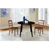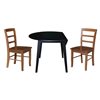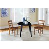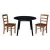International Concepts 3-Pc 42-in Solid Wood Round Dual Drop Leaf Dining Table Set w/ 2 Chairs - Black/Distressed Oak