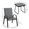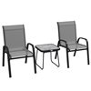 Outsunny 3-Piece Grey and Black Metal Frame Patio Bistro Set w/ Stackable Chairs and Square Table
