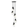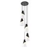 Cool black and white bring chic contrast to a modern five-light pendant that's perfect for bedrooms, dens, and transitional spaces. Curvy metal shrouds surround cones of icy swirled glass, creating a sense of organic movement and fluidity. This compact design is a statement piece perfect for rooms with lower ceilings.
