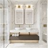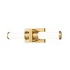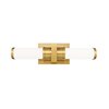 Rich, modern gold finishing enhances the clean, precise silhouette of this contemporary flush mount LED vanity bath light. It features a pair of opal glass cylinders that diffuse illumination from an integrated dimmable LED that's colour selectable, adding versatility to the stylish look of this impressive fixture.